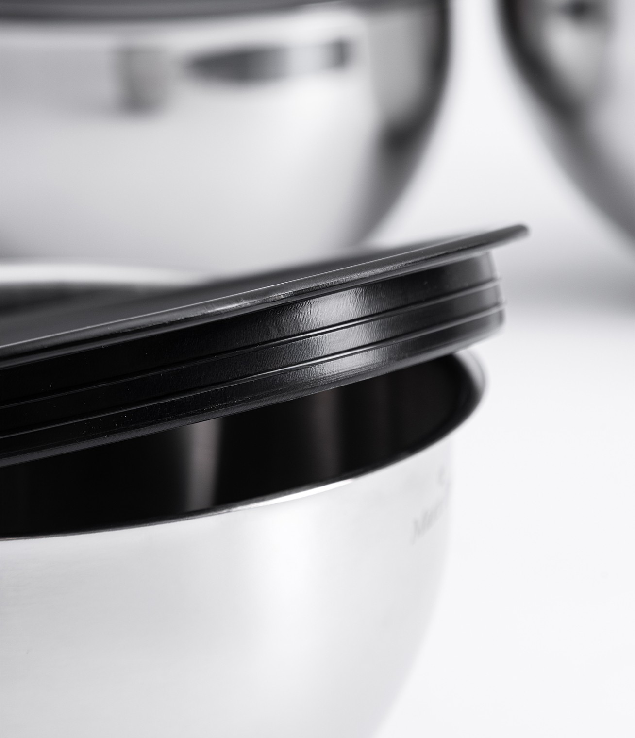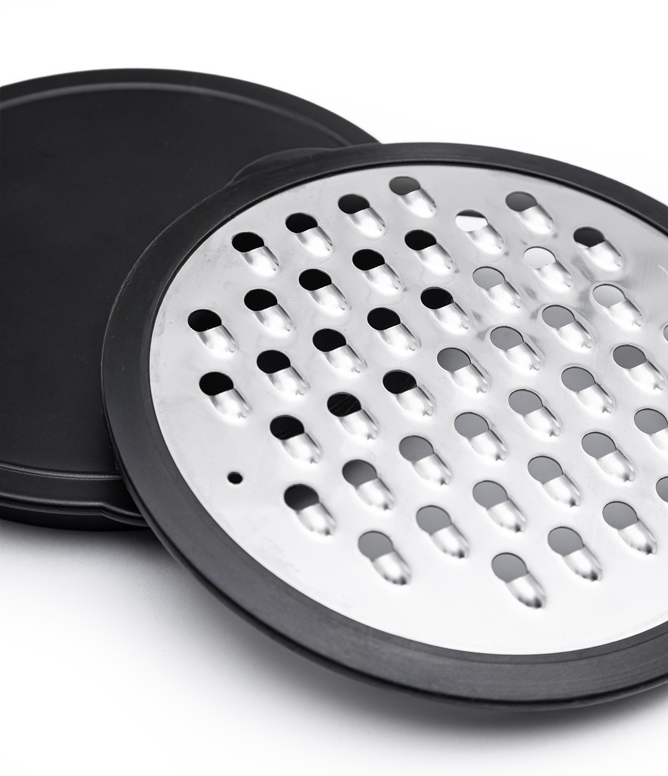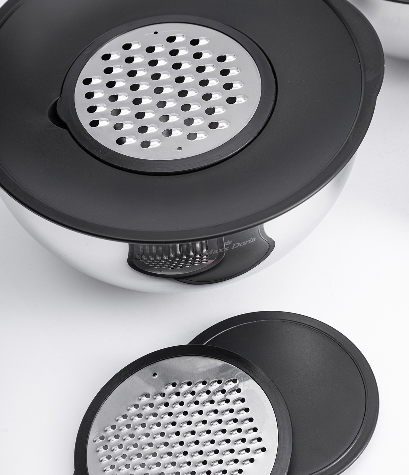 18/10 paslanmaz çelik yapısıyla dayanıklı, hijyenik ve uzun ömürlü bir kullanım sunar. Özel rendeli kapak ve değiştirilebilir rende aparatı, sebze ve meyve hazırlığını kolaylaştırırken; plastik kapak mayalama ve saklama işlemlerinde pratiklik sağlar.