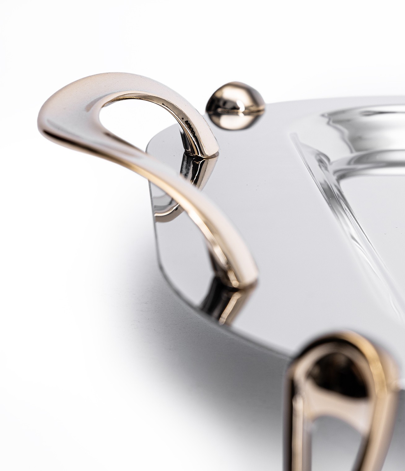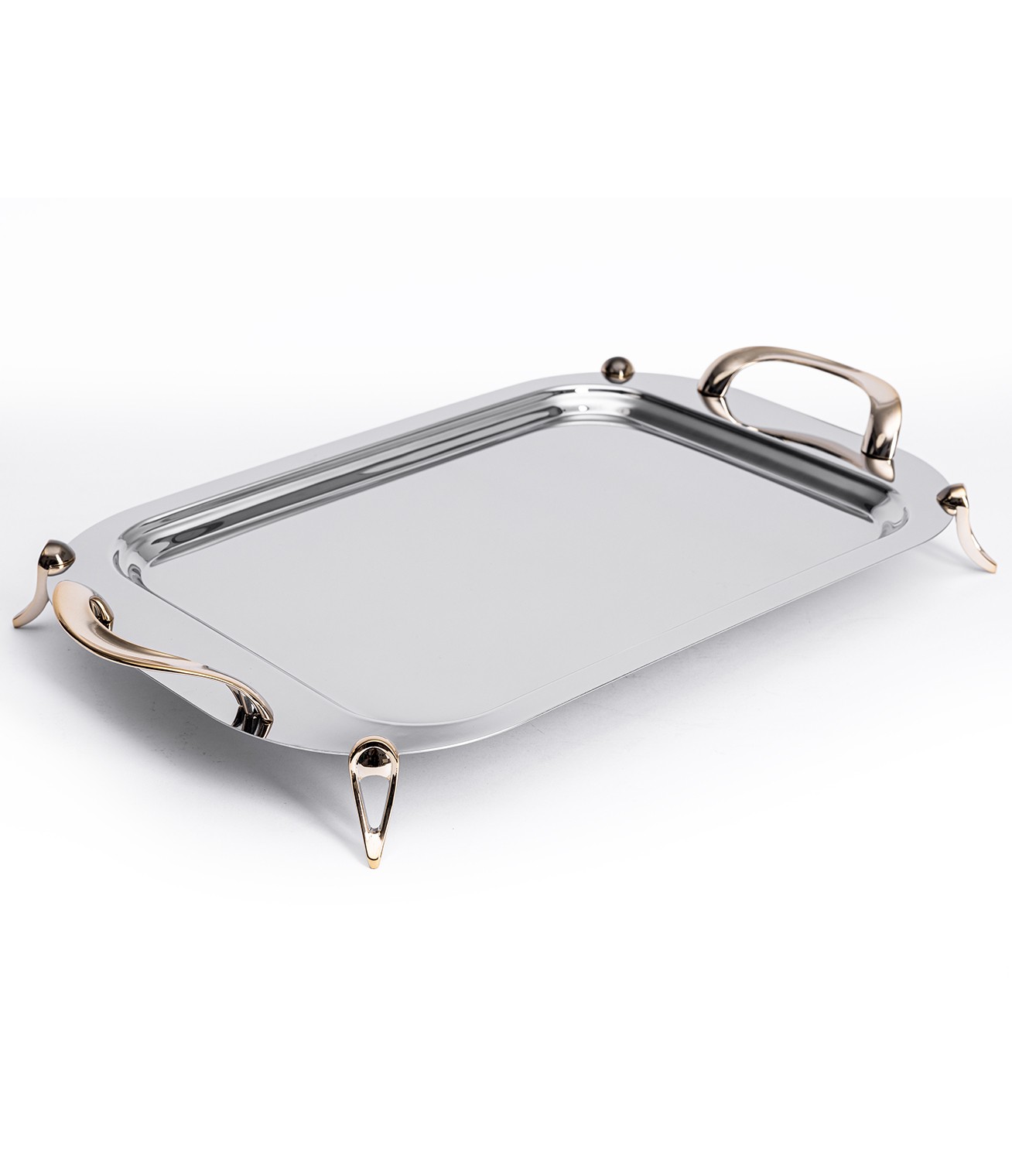 Maxx Doria Aqua Ayaklı Çelik Tepsi Gold