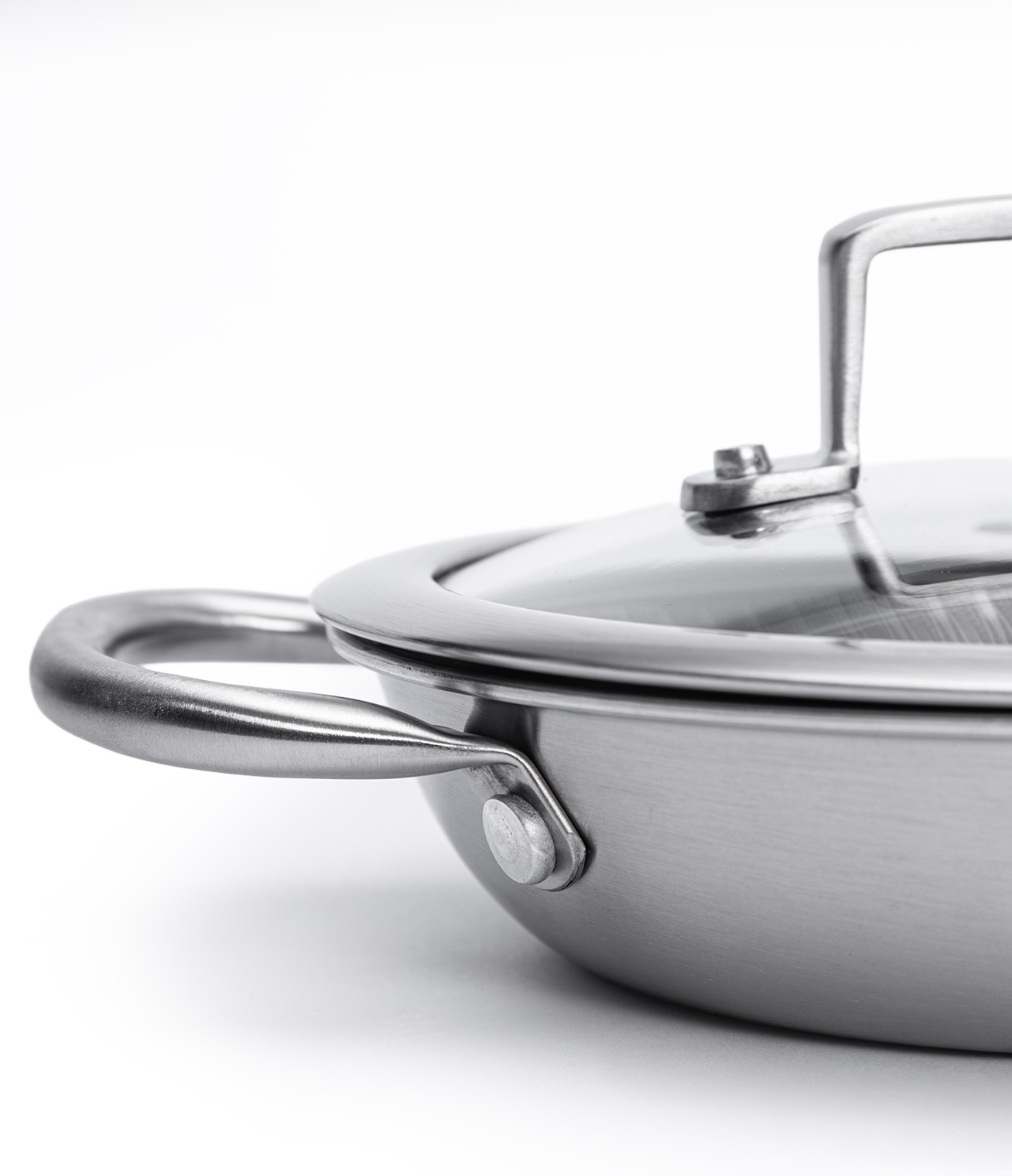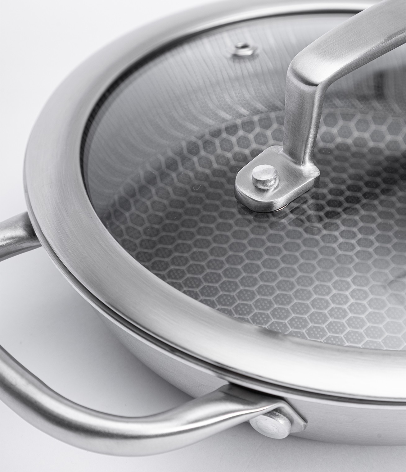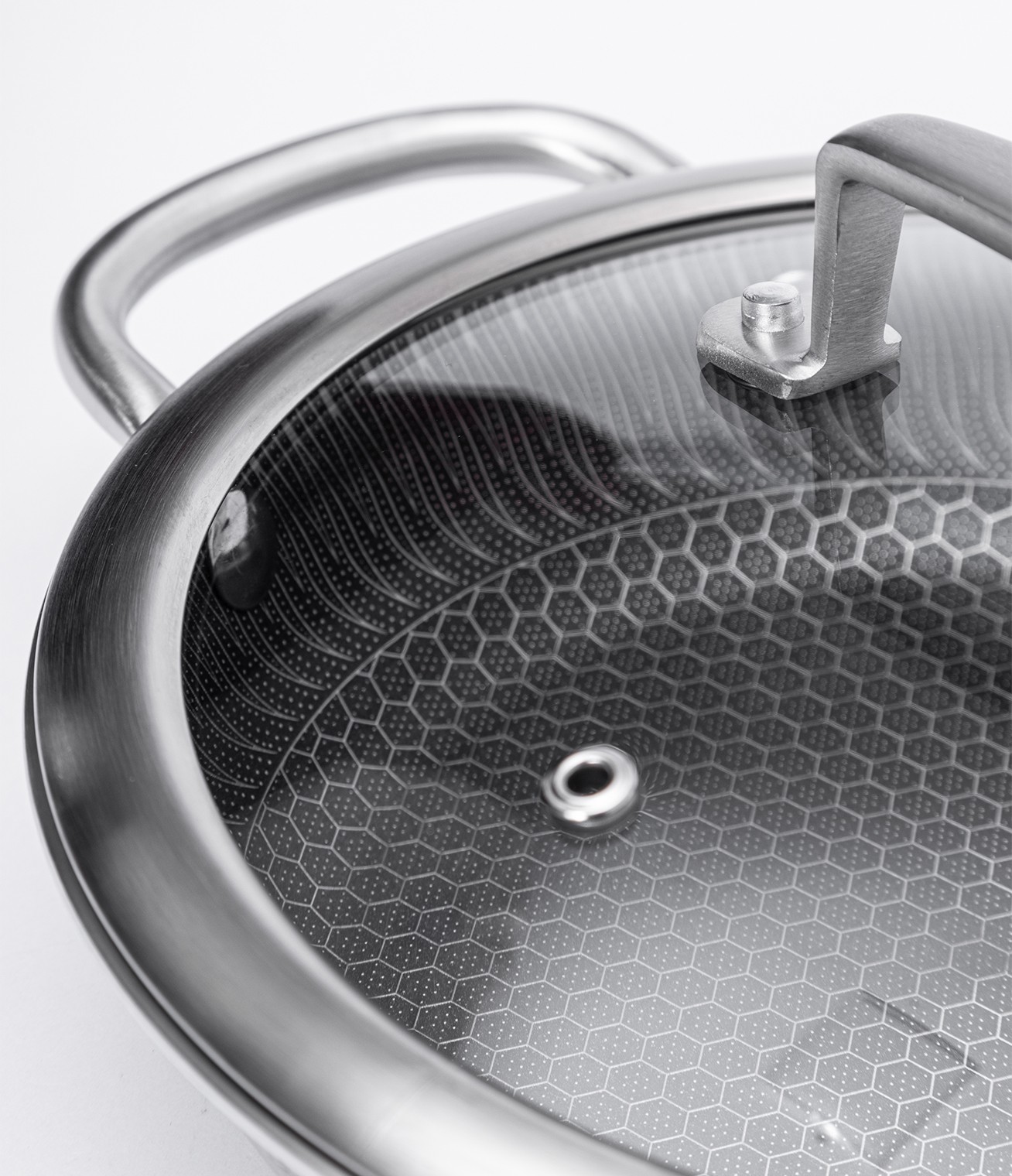 Hızlı ısınan ve ısıyı eşit dağıtan yapısıyla, sahanda özellikle kahvaltılıklar, yumurta çeşitleri, menemen, omlet gibi hızlı pişen tariflerde mükemmel sonuçlar elde edebilirsiniz. 18/10 paslanmaz çelik ile üretilmiş olan bu ürün, özel HexaWave petek dokusu sayesinde yiyeceklerin tabana tutunmasını azaltır ve yüksek ısıda güçlü mühürleme sağlar; etler, sebzeler ve mini köfteler kısa sürede dışı kızarmış, içi sulu ve lezzetli kalır. Küçük sebze yemekleri, sos tabanlı tarifler ve atıştırmalıklar da sahanda kolayca hazırlanabilir. Tüm ocak tipleriyle uyumlu tabanı, stabil duruş ve eşit ısı yayılımı sunarak günlük pratik pişirmelerde hız, kolaylık ve lezzet dengesi için güvenilir bir yardımcı olur.