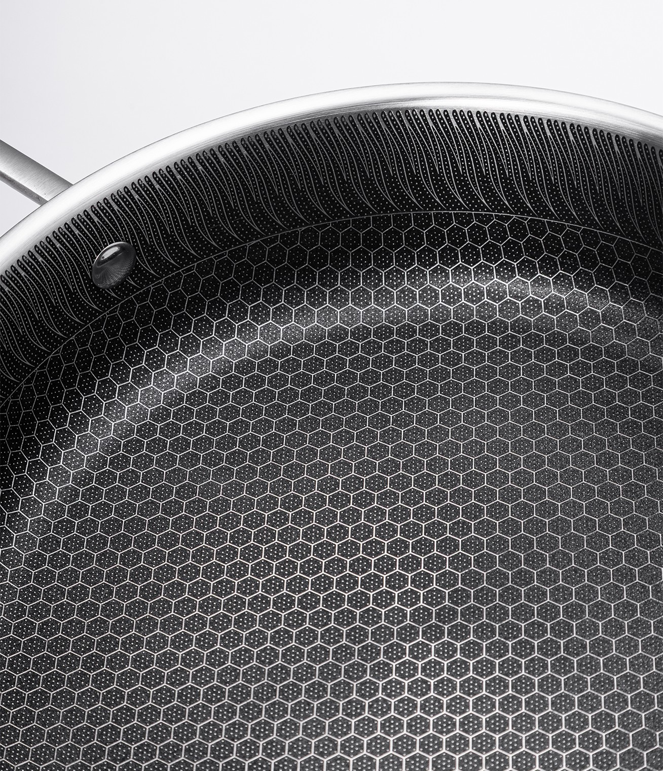 Steel Fusion basık tencere, geniş taban yüzeyi sayesinde ısının daha yoğun ve dengeli yayılmasını sağlayarak özellikle soteleme, hafif kavurma ve kısık ateşte uzun süre pişirme gibi tekniklerde üstün performans sunar. 18/10 paslanmaz çelik ile üretilmiş olan bu tencere, özel HexaWave petek dokusu sayesinde yüksek ısıda güçlü mühürleme sağlar ve yiyeceklerin yüzeye tutunmasını azaltır. Geniş ve alçak formu, buharın daha rahat çıkmasına imkân tanır; böylece karamelize dokular, yoğun aromalar ve dengeli kıvam elde edilir. Taban yapısı tüm ocak tipleriyle uyumludur. Günlük kullanımda pratiklik ve yoğun tariflerde güven veren performans sunar.