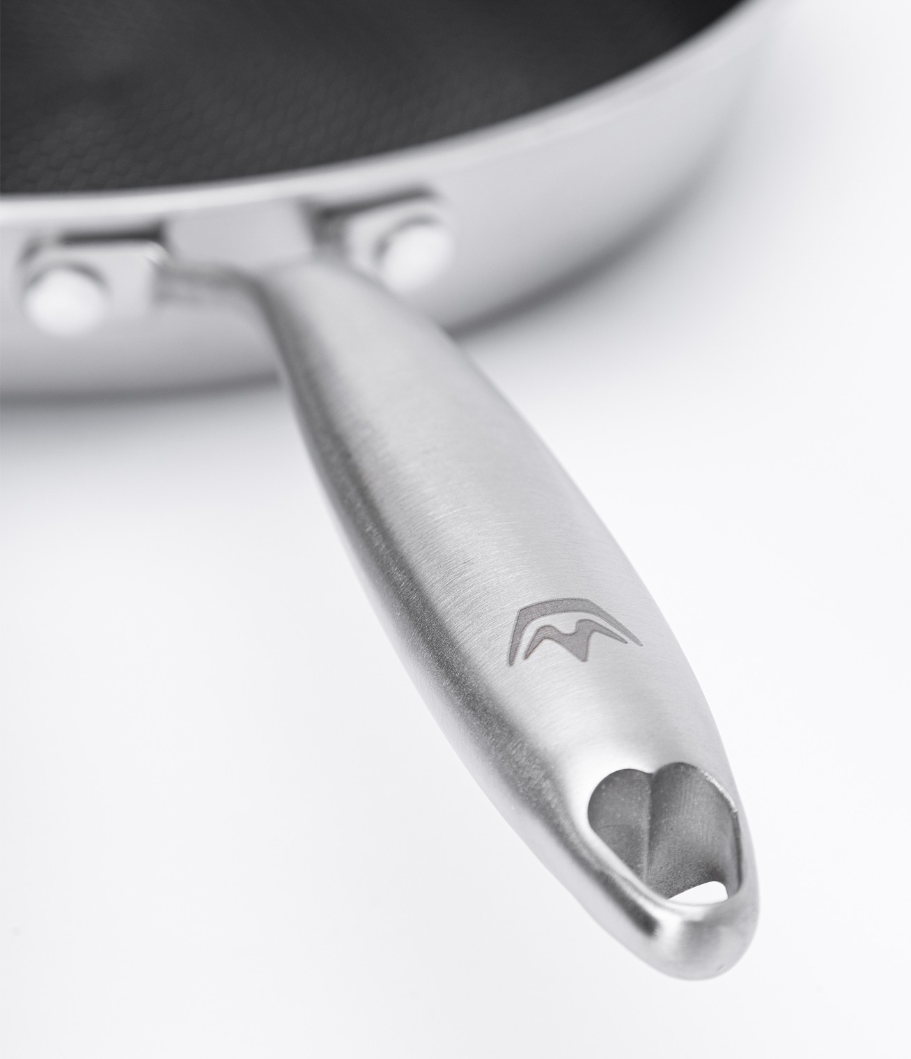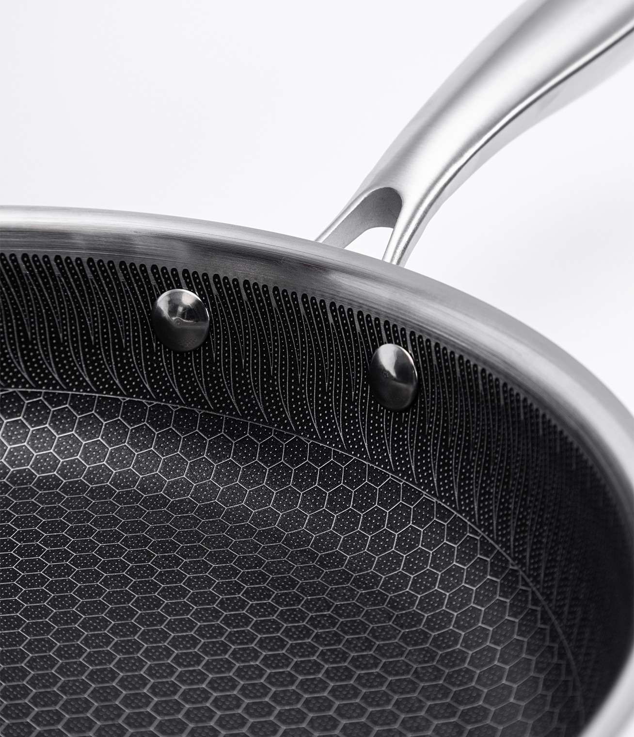 Hızlı ısınan ve ısıyı eşit dağıtan yapısıyla etten sebzeye tüm yemeklerde dengeli pişirme performansı sunar. 18/10 paslanmaz çelik ile üretilmiş olan bu ürün, özel HexaWave petek dokusu sayesinde yiyeceklerin yüzeye tutunmasını azaltır ve yüksek ısıda mükemmel mühürleme sağlar; etler ve sebzeler kısa sürede dışı kızarmış, içi sulu ve lezzetli kalır. Yapısı, yiyeceklerin kolay çevrilmesine imkân tanırken düşük yağla pişirmede dahi başarılı sonuçlar elde edilmesini sağlar. Tüm ocak tipleriyle uyumlu tabanı, stabil duruş ve eşit ısı yayılımı sunarak günlük pratik pişirmelerden profesyonel tekniklere kadar yüksek performans sağlar.